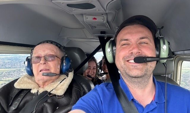 Through Weald Halls ‘Magic Moments’ scheme, which was started by the home’s lifestyle team and aims to enrich the lives of residents with meaningful activities or one-of-a-kind events and experiences, David got to fly in a Cessna C172N from North Weald after being dropped off in a World War II jeep.