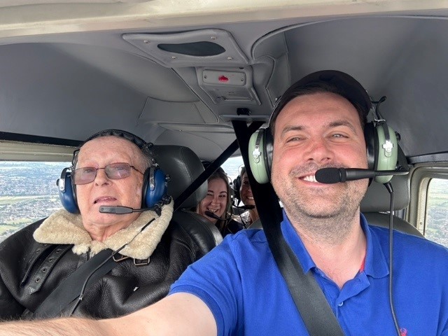 Through Weald Halls ‘Magic Moments’ scheme, which was started by the home’s lifestyle team and aims to enrich the lives of residents with meaningful activities or one-of-a-kind events and experiences, David got to fly in a Cessna C172N from North Weald after being dropped off in a World War II jeep.