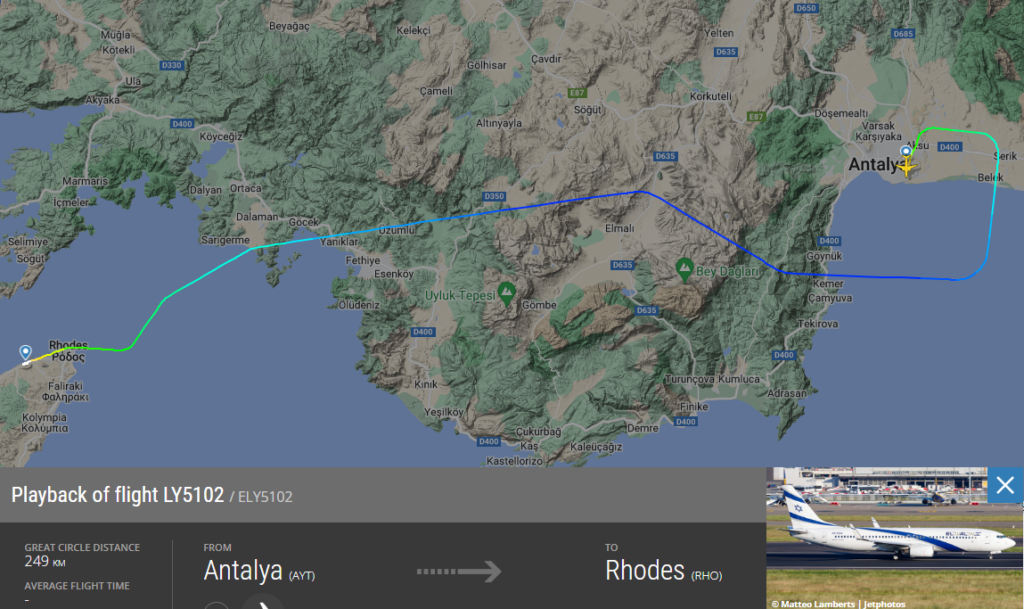 The aircraft (4X-EKA) was allowed to leave the airport and flew to Rhodes, the nearest airport outside of Turkey, where it will be able to refuel and continue to Tel Aviv at around 8pm this evening.