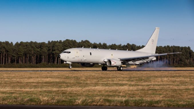 The first of nine Royal Air Force (RAF) Boeing P-8A Poseidon aircraft has arrived at RAF Kinloss in Scotland today.