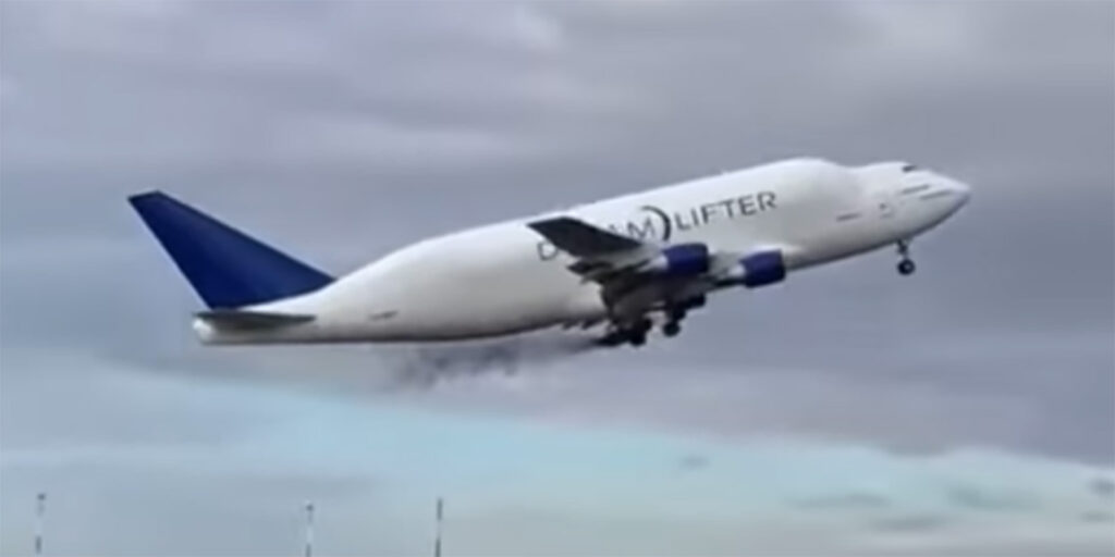Video has emerged of one of the main wheels on the Boeing 747 Dreamlifer coming off shortly after take off from Taranto-Grottaglie Airport in Italy.